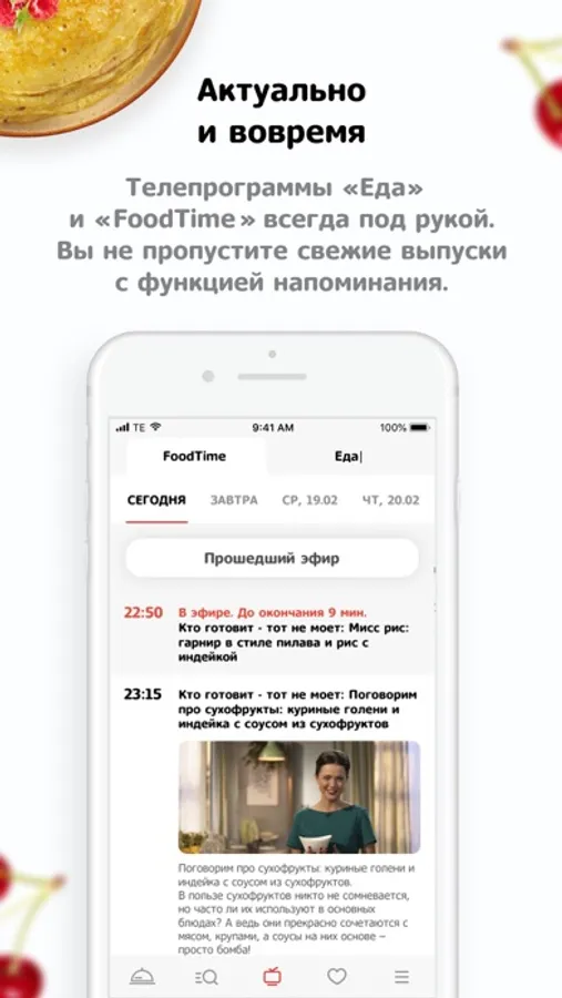 Хотите узнать что сейчас в эфире?- смотрите телепрограммы «Еды» и «FoodTime». А чтобы не пропускать интересные выпуски, установите напоминание.