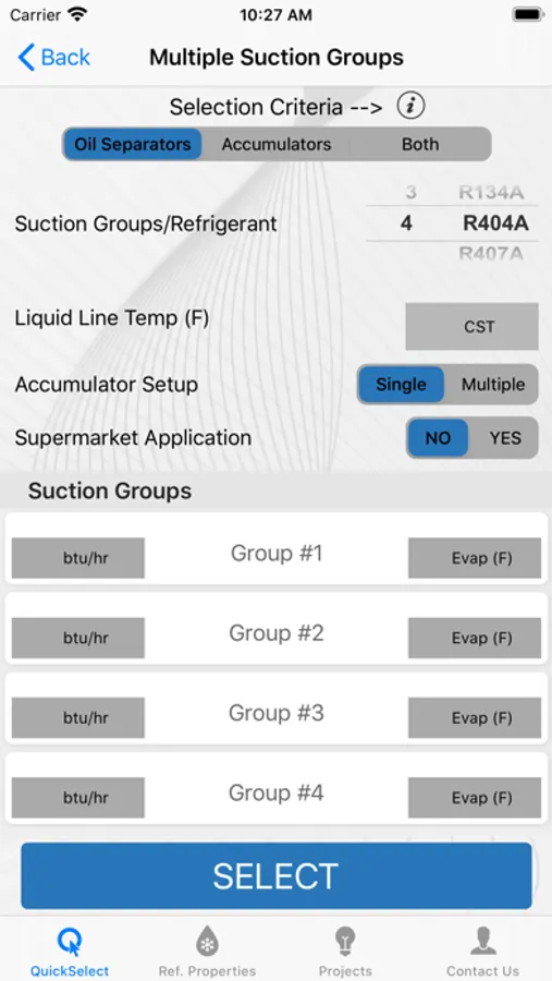 The QuickSelect App is designed around the premise of quick selection and sizing of Westermeyer Industries catalog product. Refrigeration and air conditioning system conditions may be entered for quick retrieval of products that will operate at peak performance.
