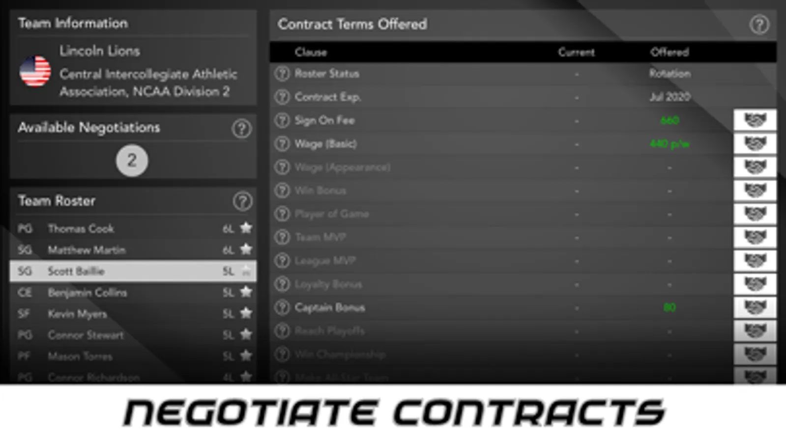 Negotiate contracts to ensure you get the deal you deserve! Perhaps you add a bonus for reaching the play-offs or for becoming the team MVP? You need to make sure you get the deal you want, after all, if you are good at something never do it for free!
