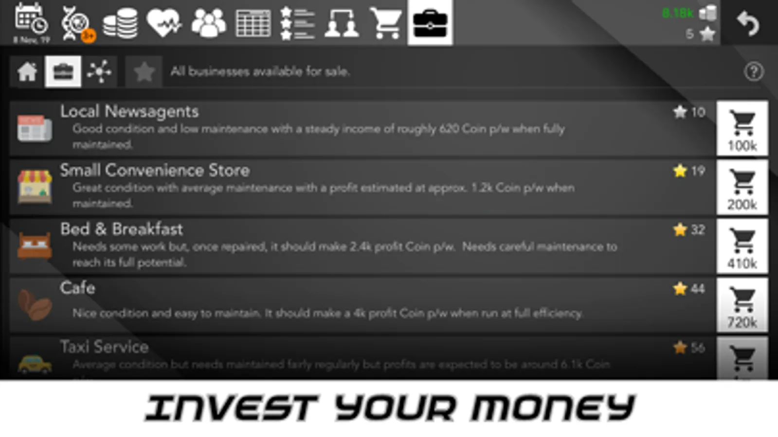 As your reputation improves, you will gain the attention of bigger and better teams. Do you stay loyal to your current team or move on? Do you move for money or sign for your favourite team? Are you ready to make the jump to the professional game? It’s up to you...