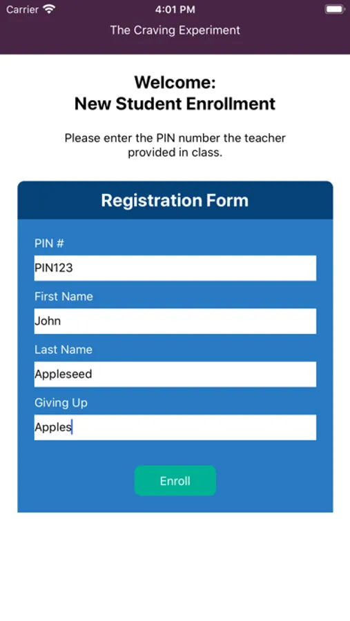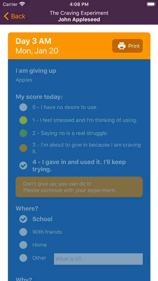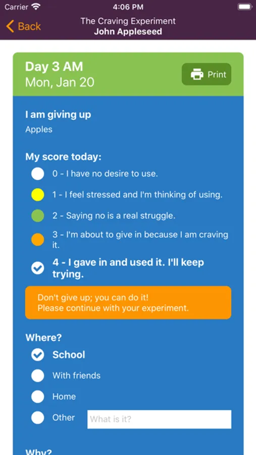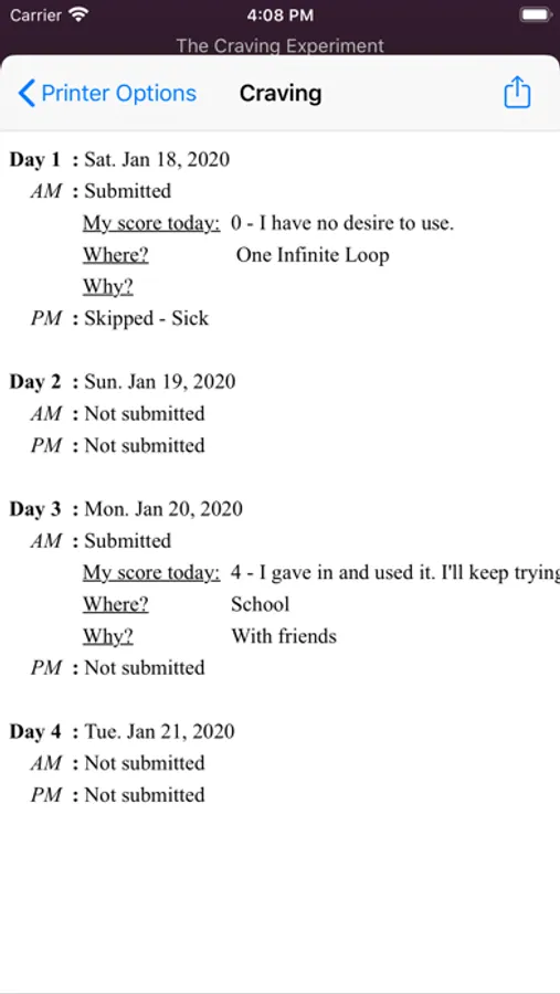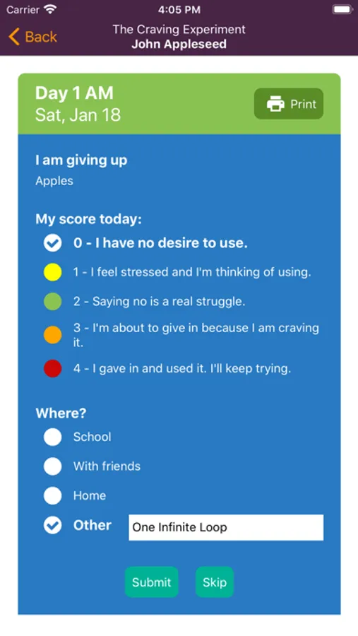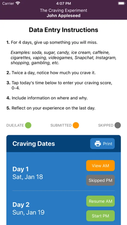 The Craving Experiment asks students to forfeit a pleasurable habit for a span of time and record their craving feelings, successes, and failures across four teacher-selected dates. At the conclusion of the experiment, student complete a reflection looking back on their time participating.