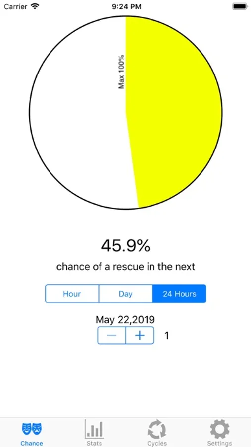 Uses information from the Rocky Mountain Rescue Group database to calculate the likely-hood of a rescue in the next hour or day. Other statistical information is also presented, allowing you to see various information about the number and probabilities of a rescue.
