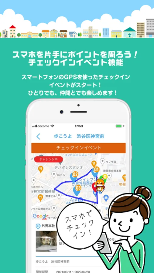 イベントによっては歩いた距離や歩数ごとに店舗で使える割引クーポンがもらえるチャンスも。