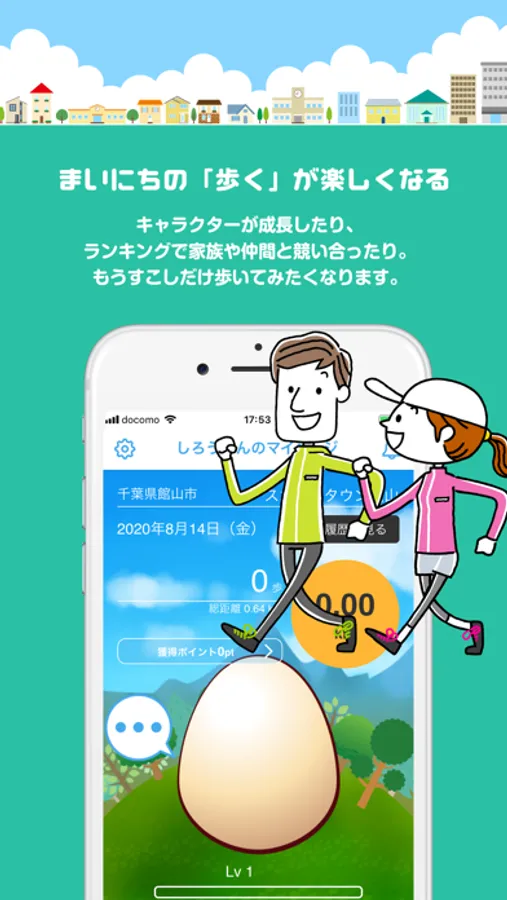 あなたの歩いた距離に応じてキャラクターが成長したり、新しいキャラクターが手に入ったり。