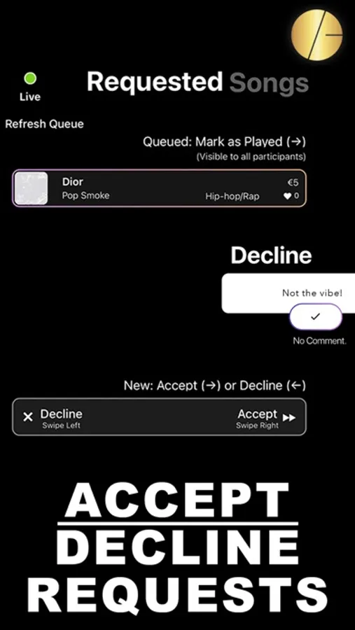 With One28 DJ you have the ability to receive paid song requests from your audience.