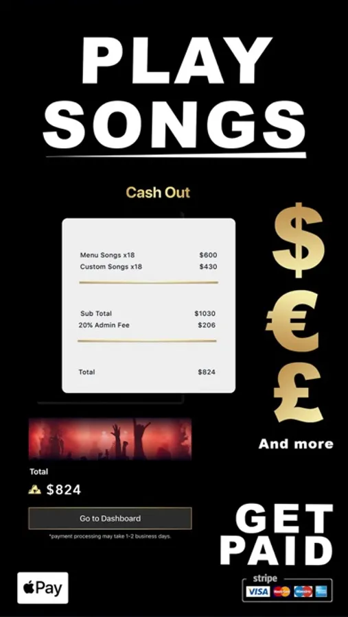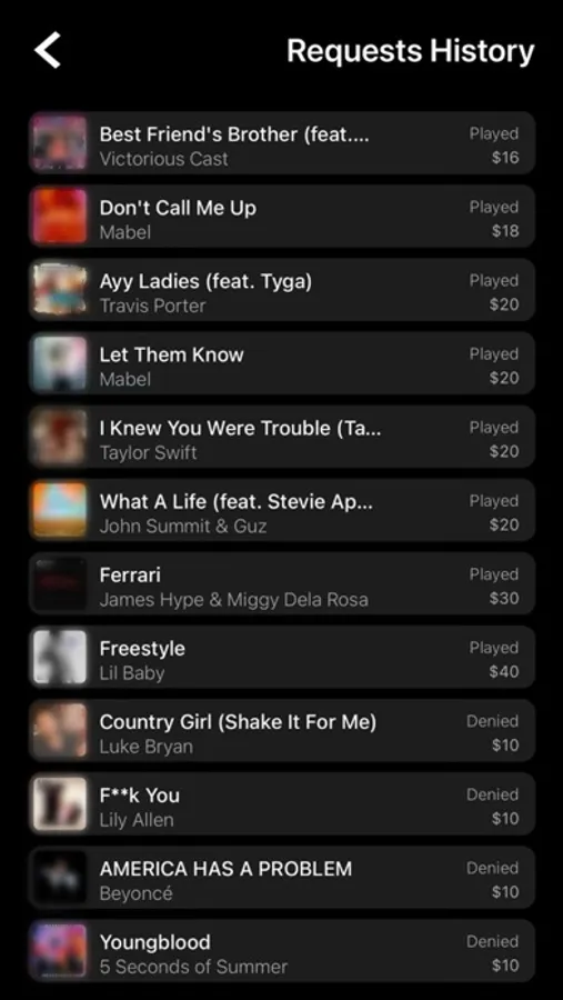 To charge your customer, you must accept their request, play the song and mark it as played within the app.
