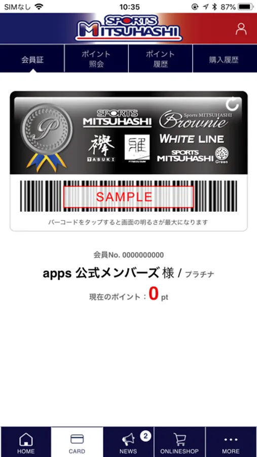 ・会員証バーコード(店頭でご購入の際にレジでご提示ください)