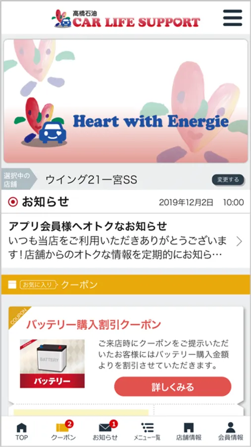 そんな高橋石油株式会社のアプリ「CAR LIFE SUPPORT」でみなさんの愛車をお任せ下さい!
