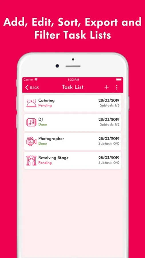 - Add, Edit, Sort, Export and Filter Task Lists