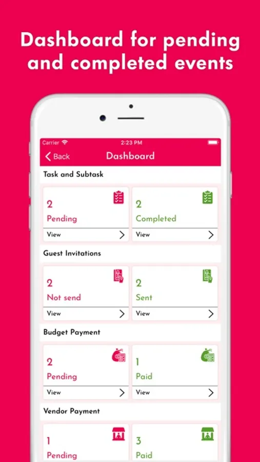 - Dashboard for pending and completed events