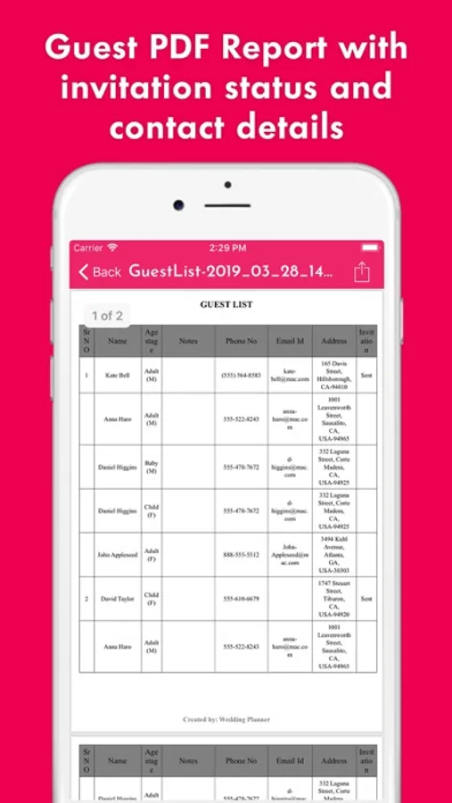 - Guest Reports with invitation status and other details