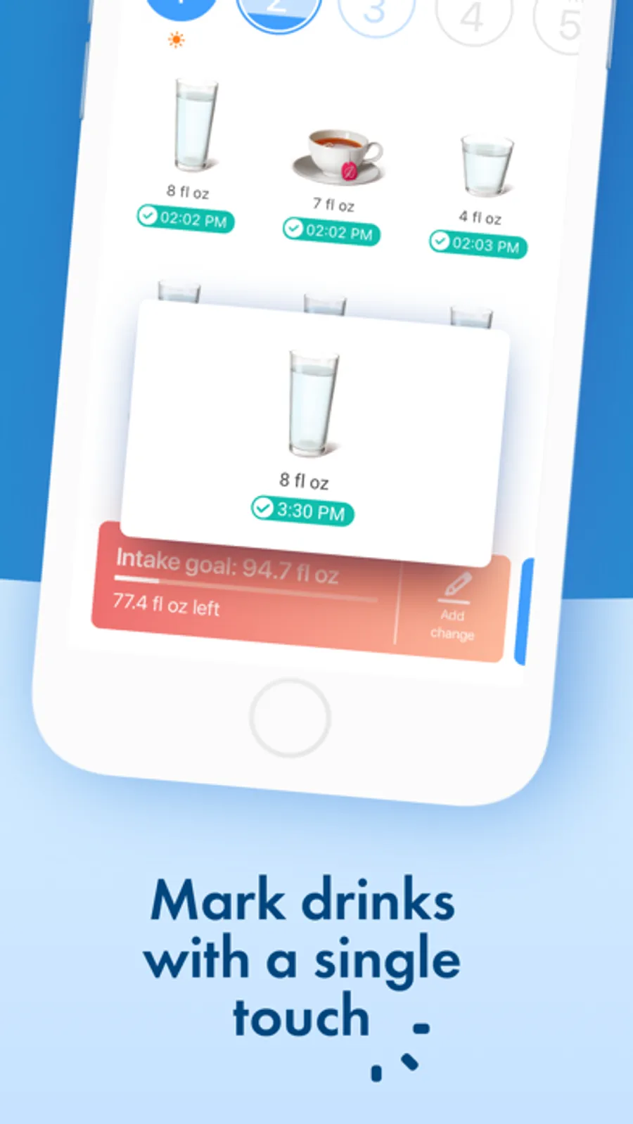 Mark the water you have drank with one touch of the widget or immediately in the reminder message, add your own unique drinks, easily track your progress and the balance of water in the body.