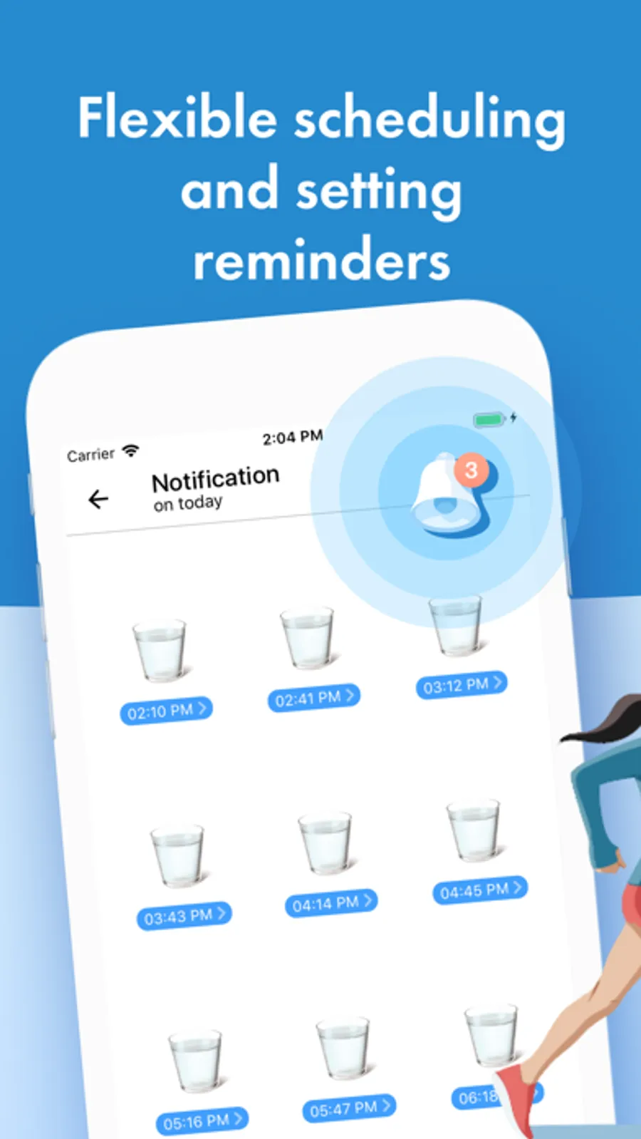 * Convenient scheduled reminders to drink water