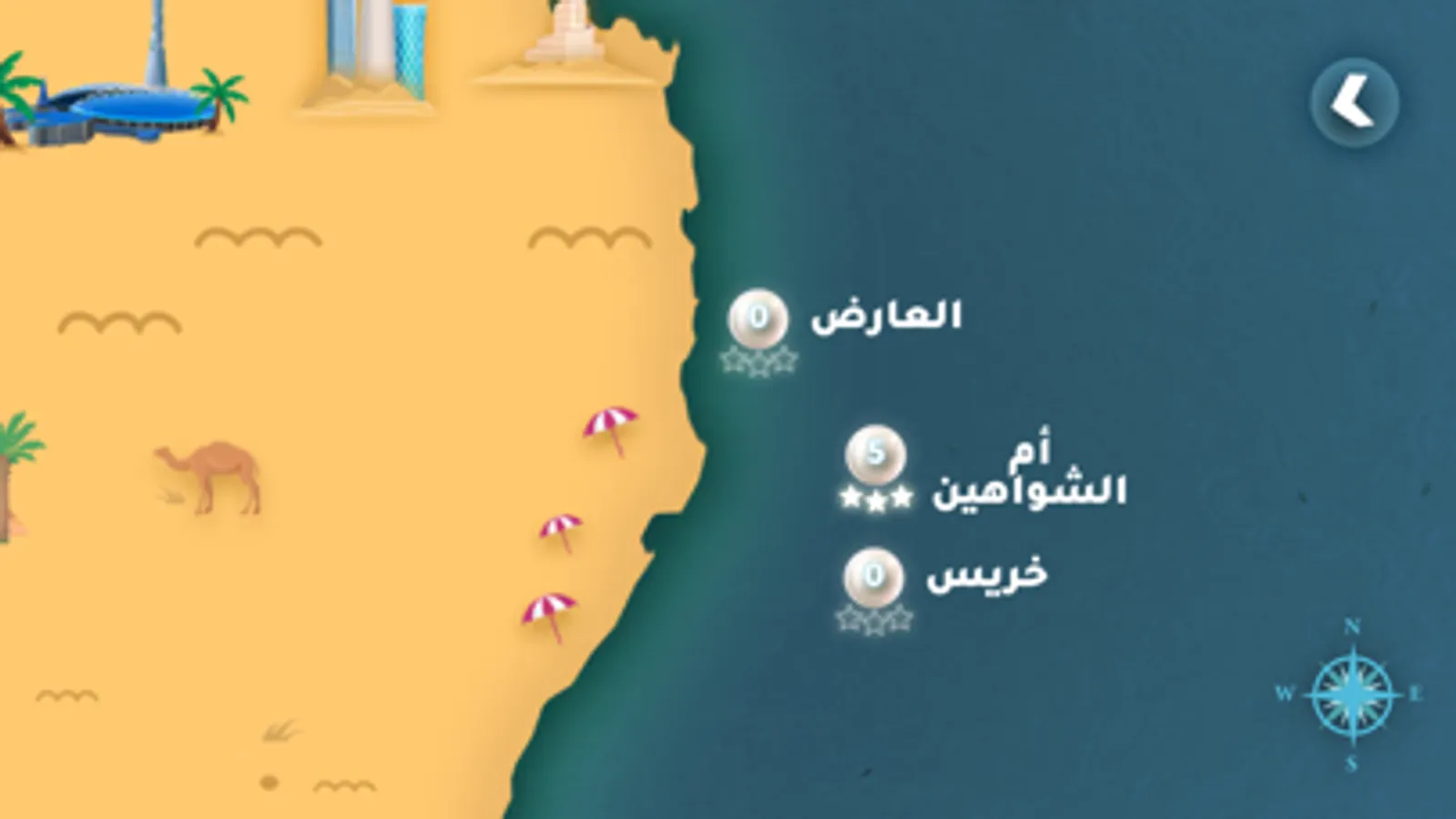 The game aims at introducing children to pearl diving, so that children can experience the tradition of parents and grandparents and learn about the most important types of pearls, diving tools and marine terminology. This game is the electronic version of the Sinyar tournament organized by Katara annually.