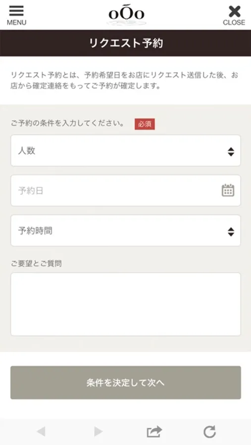 希望のメニュー・日時を指定して送信するだけで予約を依頼できます。