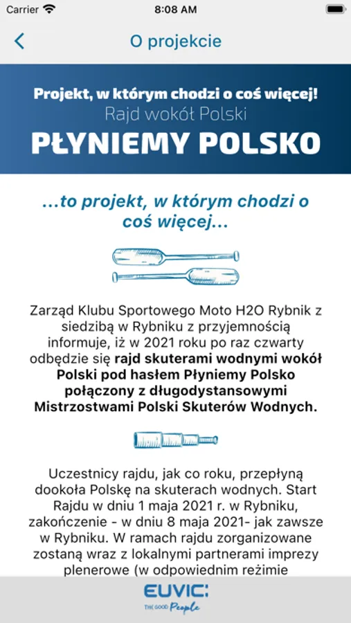 Aplikacja projektu Płyniemy Polsko - Edycja 2023. Moduły aplikacji pozwalają na dokładne zapoznanie się z celem i ideą projektu oraz podglądniecie harmonogramu startów. Możliwe jest również śledzenie rajdu na żywo oraz sprawdzenie wyników. W zakładce partnerzy zostały umieszczone organizacje i firmy wspierające nasz projekt.