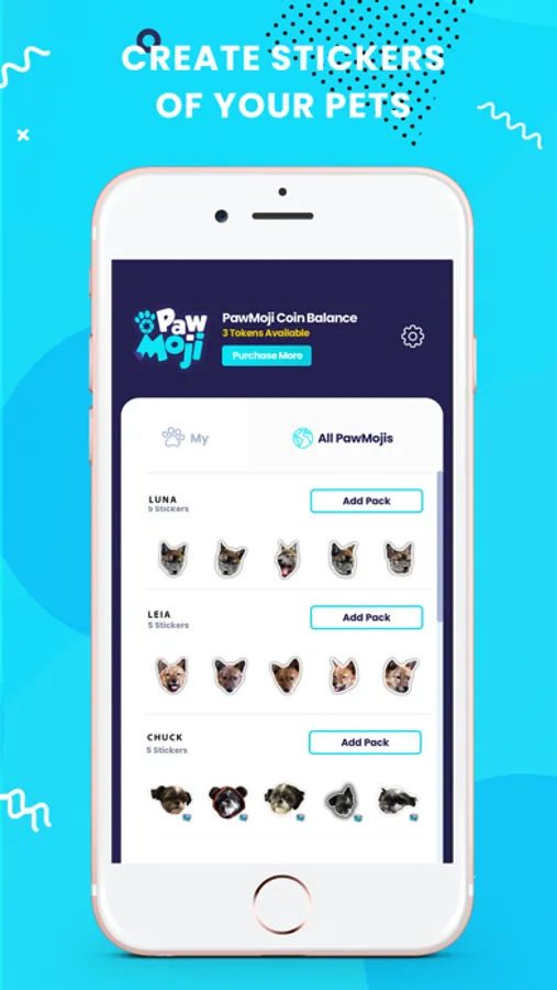 PawMoji is the only application that will take photos of your favorite pet and create customized stickers of them to use in any application.