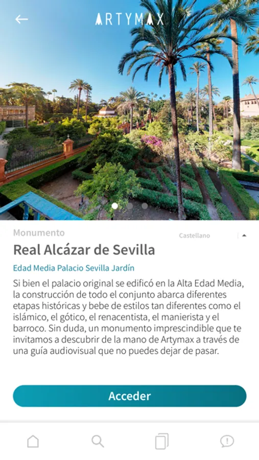 Artymax es una aplicación diseñada para su implementación en espacios culturales, museos y/o monumentos. A diferencia de otras plataformas o aplicaciones existentes en el mercado, Artymax ofrece un abanico de servicios que, juntos, cubren las demandas más habituales de las visitas culturales y las complementa con prestaciones novedosas en este mercado. Desde esta app el usuario podrá: