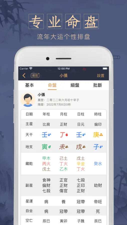 天命八字是一款易用、简洁、专业的八字命理APP,提供由中国传统文化衍生而来的算命服务。