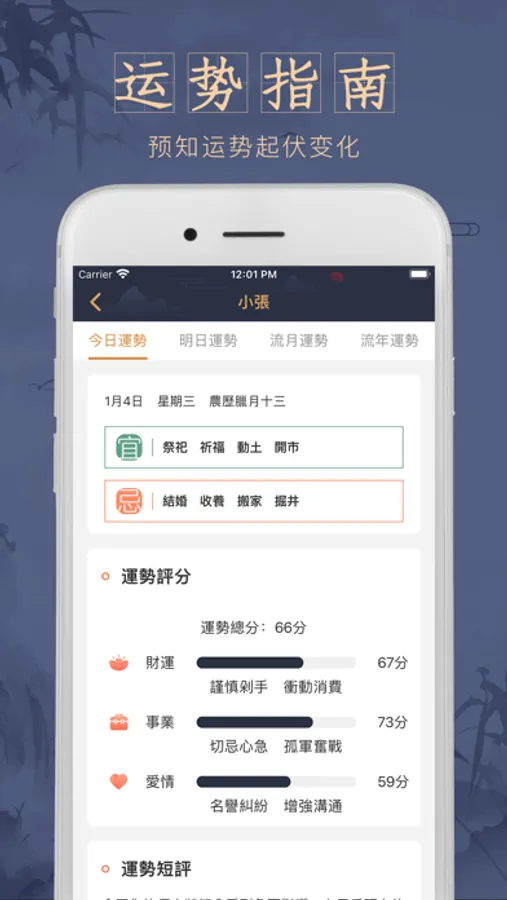 ·来八字算命师查看自己今天的运势吧,爱情运、事业运、财富运、黄历宜忌应有尽有