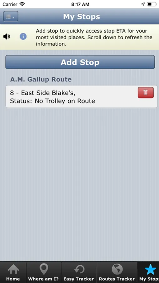 Note: If a stop or route is not near your location, the system will guide you by giving you