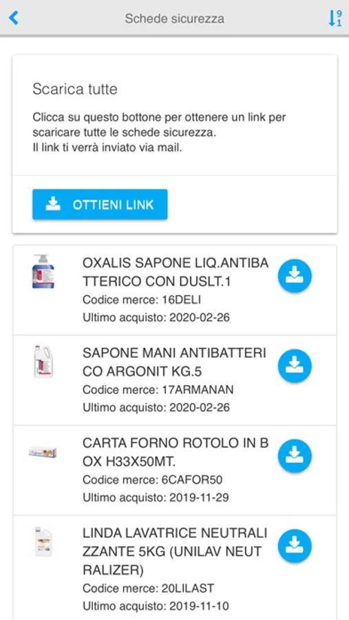 - Scaricare tutte le schede di sicurezza, tecniche e MOCA per rispettare il tuo protocollo HACCP