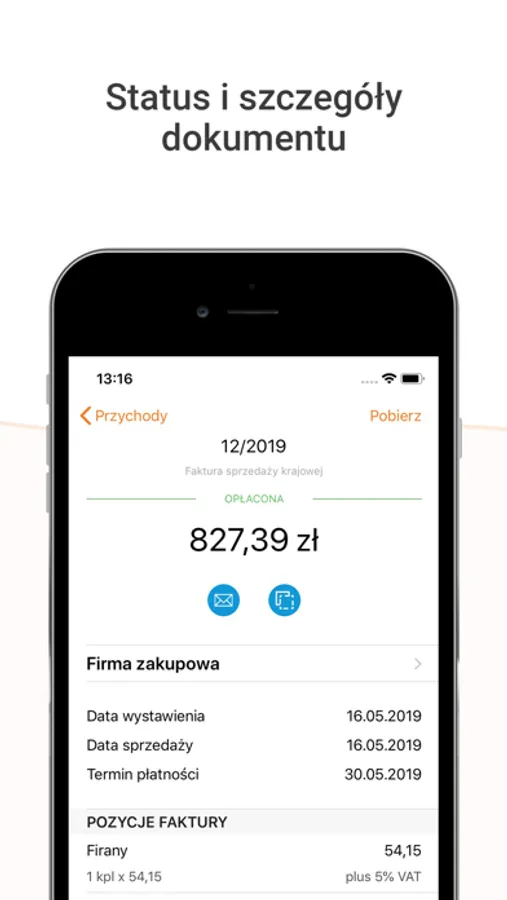 Aplikacja jest zintegrowana z kontem użytkownika na ifirma.pl.