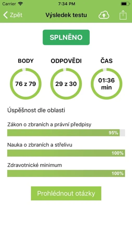 - režim prohlížení otázek, učení i reálného testu nanečisto