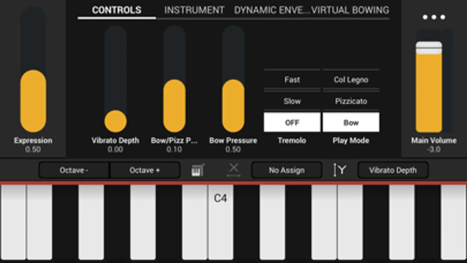 Control the instrument’s expressivity in real-time directly through the touch control interface on your iPhone or iPad including the exclusive virtual bowing touch surface!