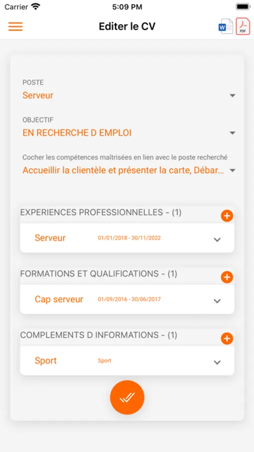 - Recherche d’offres d’emploi et possibilité de mettre en favoris pour une gestion ultérieure.