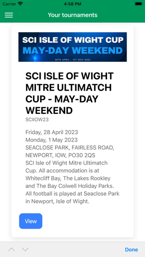 Keep up to date with the latest scores from your SCI football festival direct to your phone.