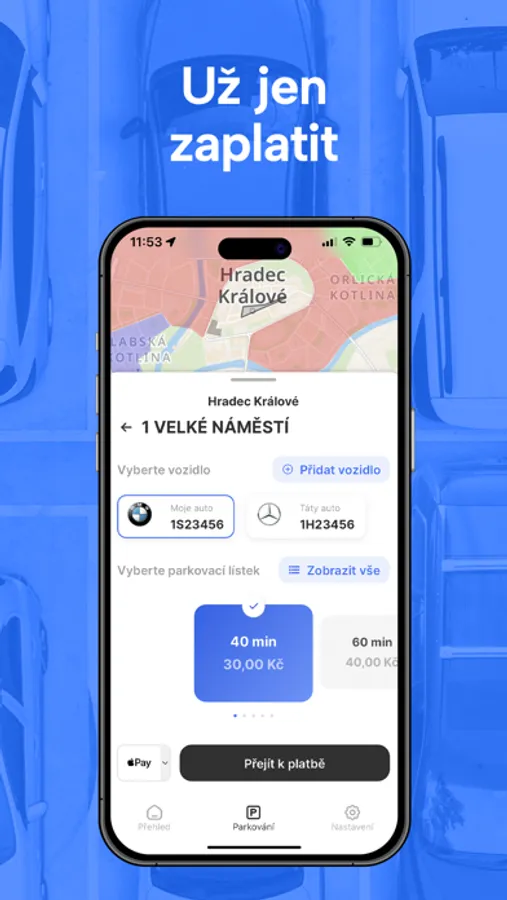 ParkSimply 2.0 je jediná aplikace, která nabízí největší výběr platebních metod ApplePay, Platební kartou, Premium SMS, m-platbou, a to rychle, bezpečně a bez zbytečného stresu, navíc, když spěcháte na schůzku nebo jednání.