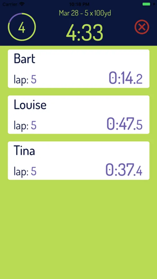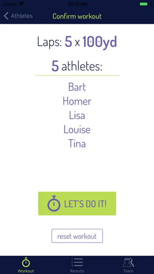 With easy team entry and workout setup, coaches only need to line their athletes up, start the timer, and tap the athlete's button each time they finish a lap.