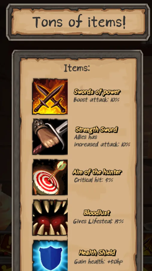 The game features 4 unique heroes (Mage, Preist, Warrior, Archer) with their own special abilities when leveled up.