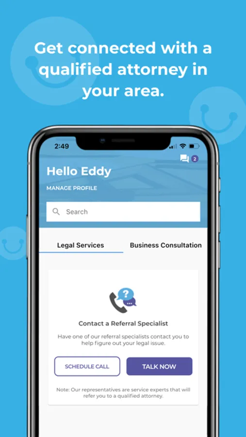 • Set up a call with a legal referral specialist now or at a convenient future time