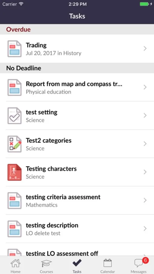 • Task list (including follow-up tasks for teachers)
