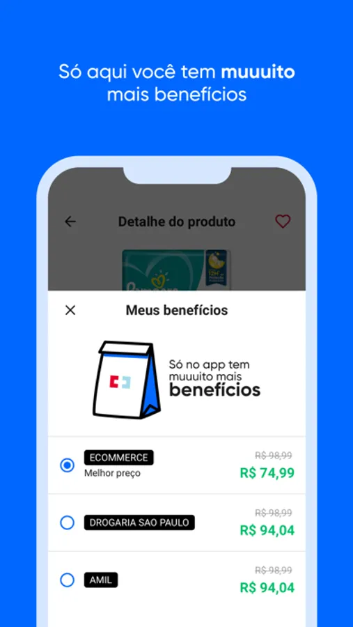 Cadastre seus convênios e benefícios e saiba qual é o melhor preço disponível para os produtos que você deseja.