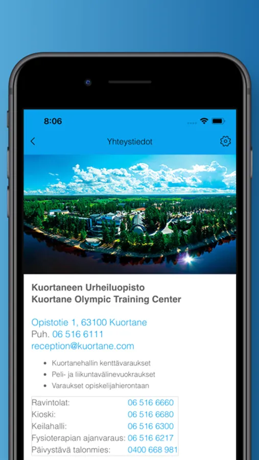 Tämä sovellus on kätevä, mukana kulkeva tietopankki Kuortane Olympic Training Centerin / Kuortaneen Urheiluopiston palveluista ja toiminnasta.