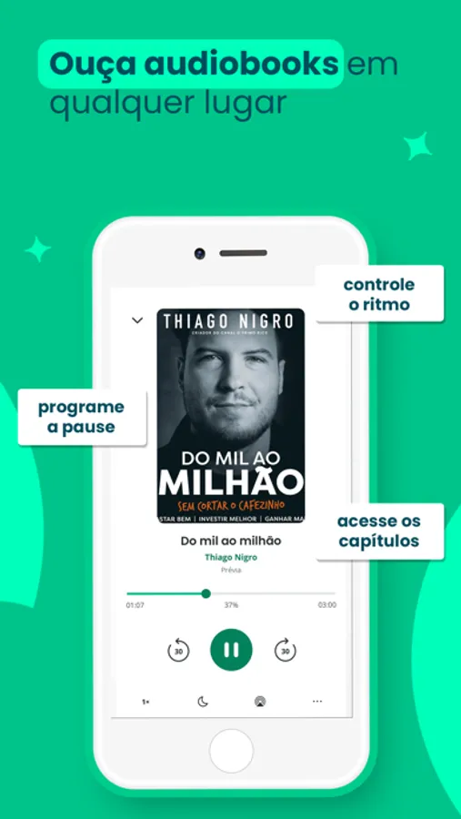 - 4° Leia ebooks e ouça audiobooks em qualquer hora ou lugar.