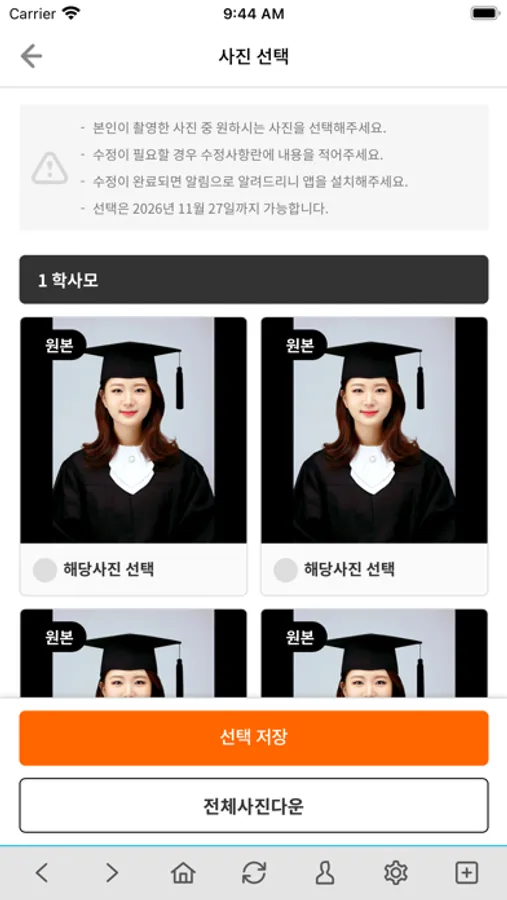 사진 선택 내용을 실시간 알림으로 공지 받을 수 있읍니다.