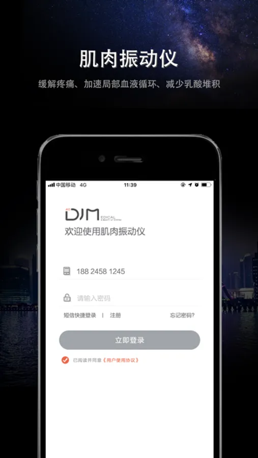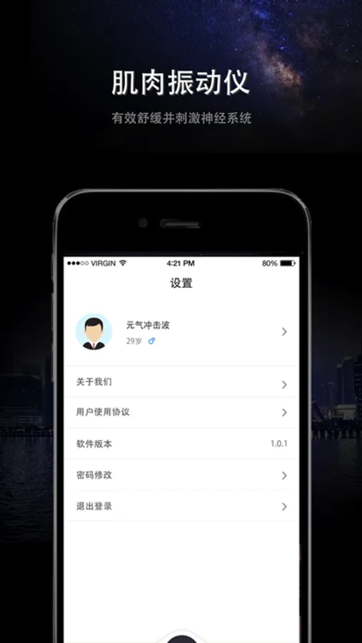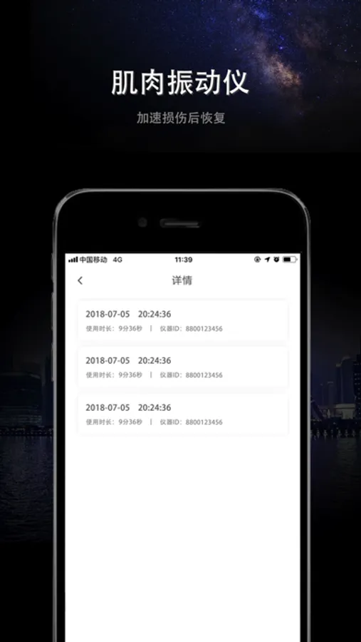 本款app需要配合本公司肌肉震动仪器进行使用,主要用于操作肌肉震动仪器。