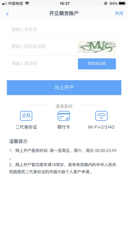 开户准备: