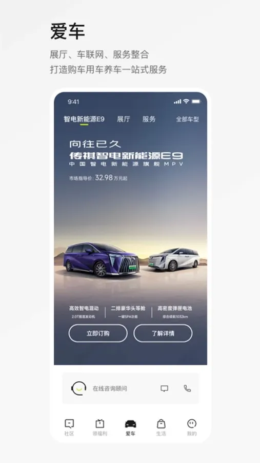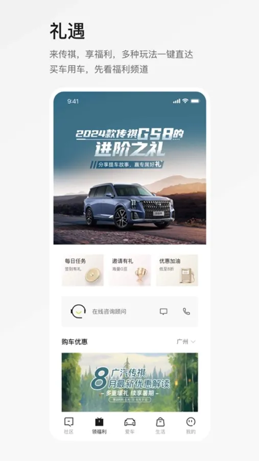 广汽传祺APP是为用户精心打造的:资讯、社交、购车、养车用车等一站式服务平台