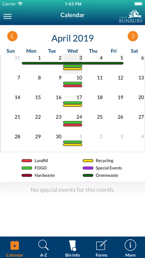 - Forms to request and additional bin, notify Council of a missed service and more