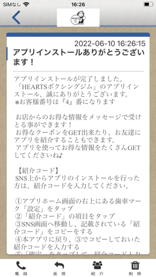 HEARTSのアプリをSNSを通じてお友達に紹介する事ができます。