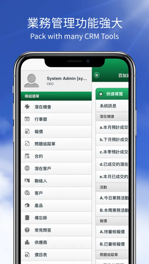 This software must be used in conjunction with CRM Plus or 101CRM.net cloud service and the Go module access must be granted by the system administrator.