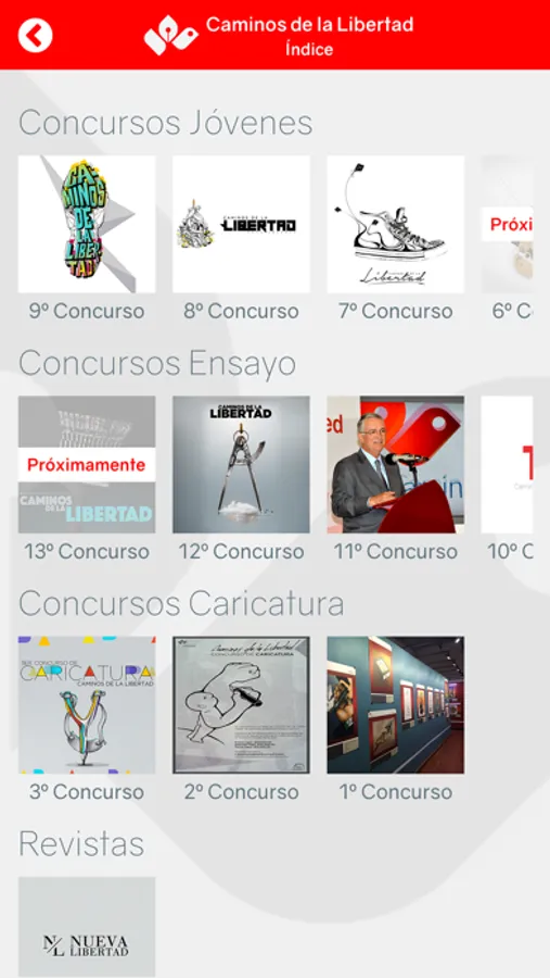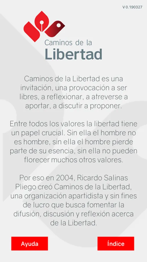 Esta aplicación contiene los trabajos ganadores de los concursos Caminos de La Libertad organizados por Grupo Salinas, estos de dividen en diversas categorías y se muestran al publico aprovechando las funciones multimedia de los dispositivos móviles.
