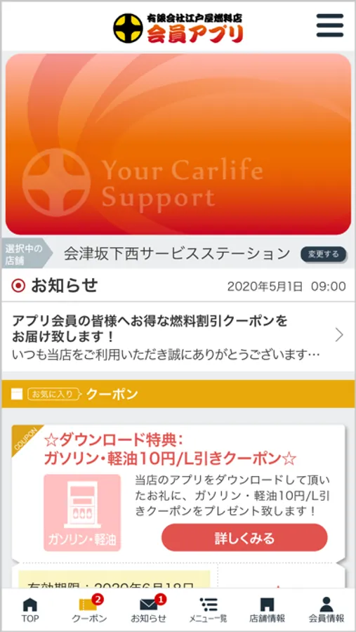 お客様に快適なカーライフをお過ごしいただけるよう、有限会社江戸屋燃料店の会員アプリで愛車のトータルにサポート致します!