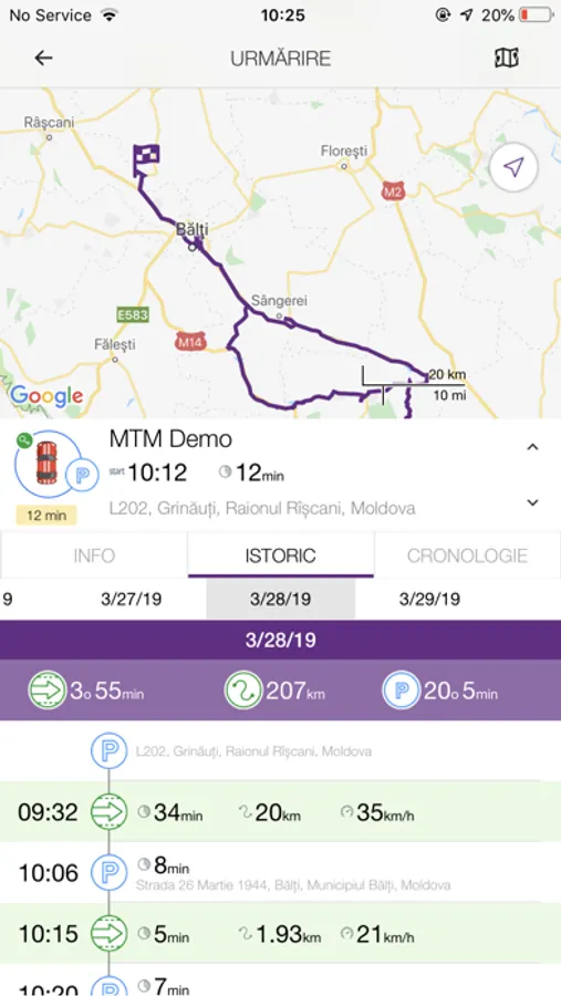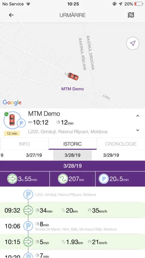Transport Manager de la Moldcell este o soluție de monitorizare online a mijloacelor de transport cu echipamente GPS. Cu ea, puteți afla în orice moment locația exactă a unității Dvs. de transport, viteza de deplasare, traseul parcurs, locurile de staționare etc. Aceste informații sunt stocate, fapt care vă permite, de asemenea, o monitorizare post-factum a unității de transport. Beneficiile Transport Manager: - Monitorizare în timp real a flotei auto - Notificări alerte: depășire viteză, motor pornit/oprit, scoatere echipament, intrare/ieșire locatii, expirare asigurări/documente, foi de parcurs - Trimitere locație autovehicul, voltajul bateriei auto, kilometraj - Dar, cel mai important, îmbunătățirea proceselor de business, prin economii, disciplină, siguranță și control.