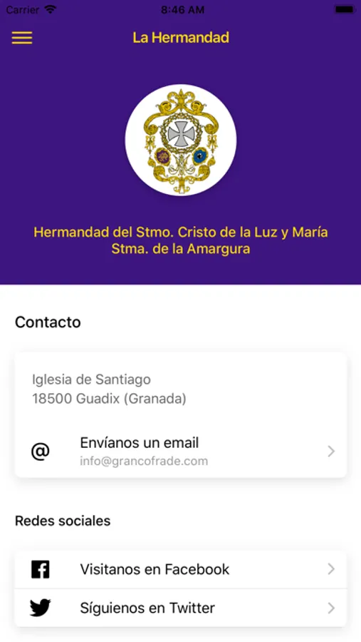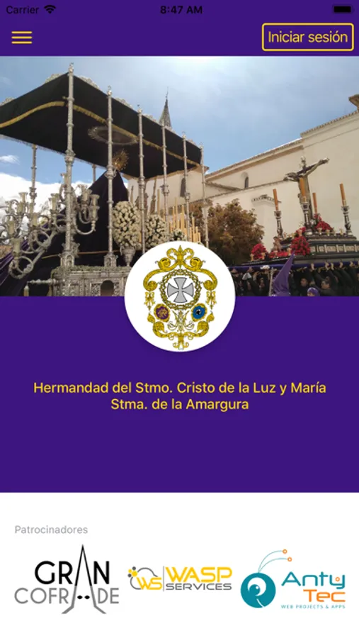 Aplicación Oficial de la Hermandad del Stmo. Cristo de la Luz y María Stma. de la Amargura de Guadix, donde se puede consultar información de la Hermandad, próximas salidas y acceso identificado para los hermanos/as en el que pueden consultar/modificar sus datos personales, consultar recibos y recibir notificaciones de la Hermandad.